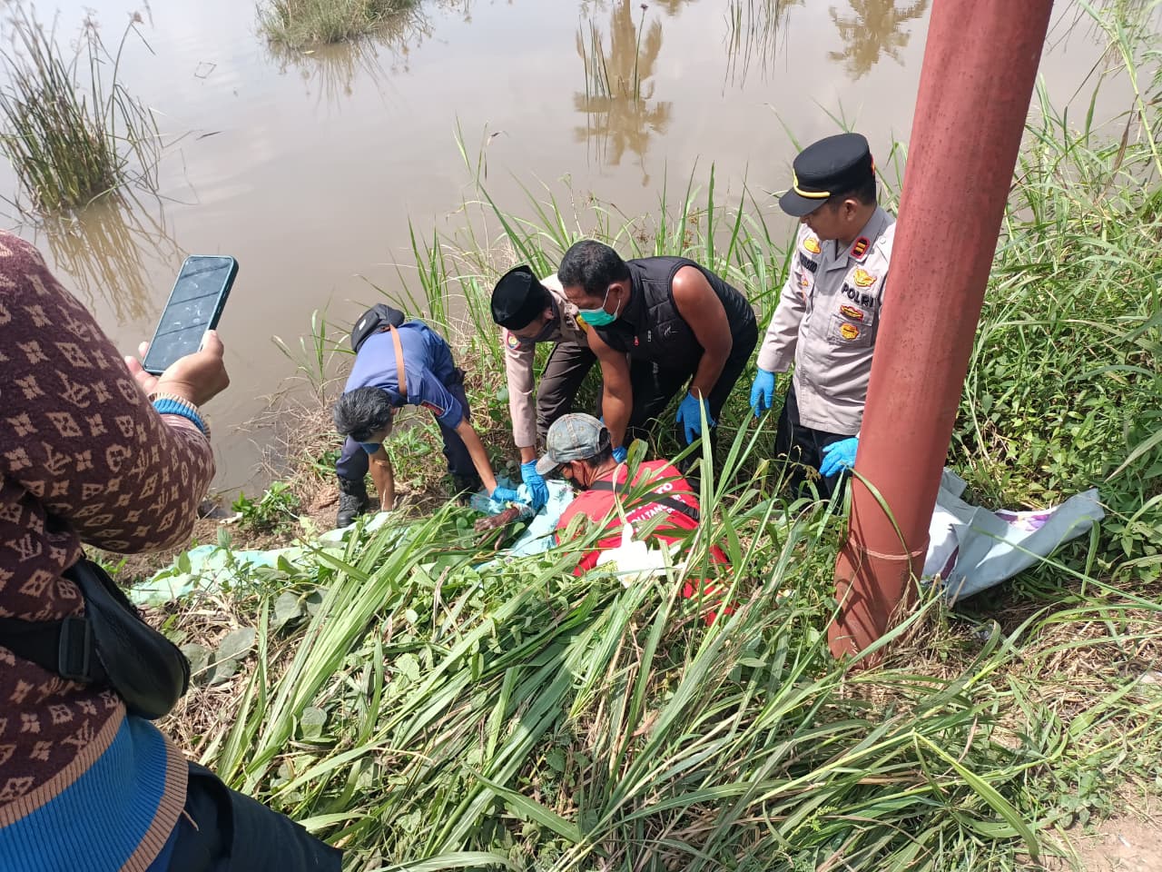Setibanya di tempat kejadian perkara (TKP) sekitar pukul 09.55 WIB, petugas menemukan mayat pria tanpa identitas mengapung di area persawahan. Korban saat ditemukan mengenakan celana jeans biru tua dan baju batik biru tua.